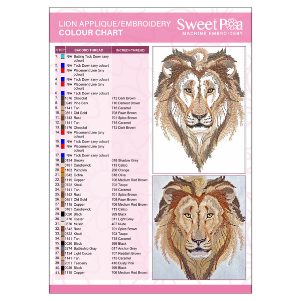 Lion Applique Colour Chart