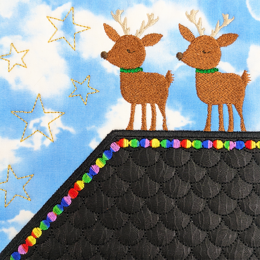 There are a total of 12 blocks in this mystery quilt with a new release each Friday leading up to Christmas. Each block can be made in the 5x5, 6x6 or 7x7 size hoop. The blocks are quilted in the hoop.