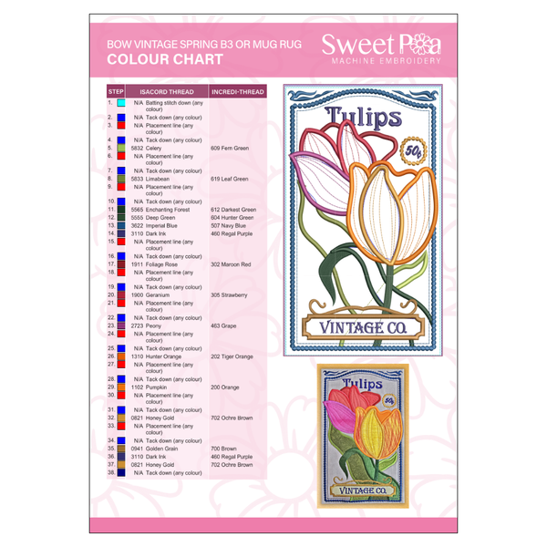 There are a total of 9 blocks in this mystery quilt, with a new release each Monday leading up to Easter. The third block in this year's Spring BOW is the Tulips by Vintage Co.