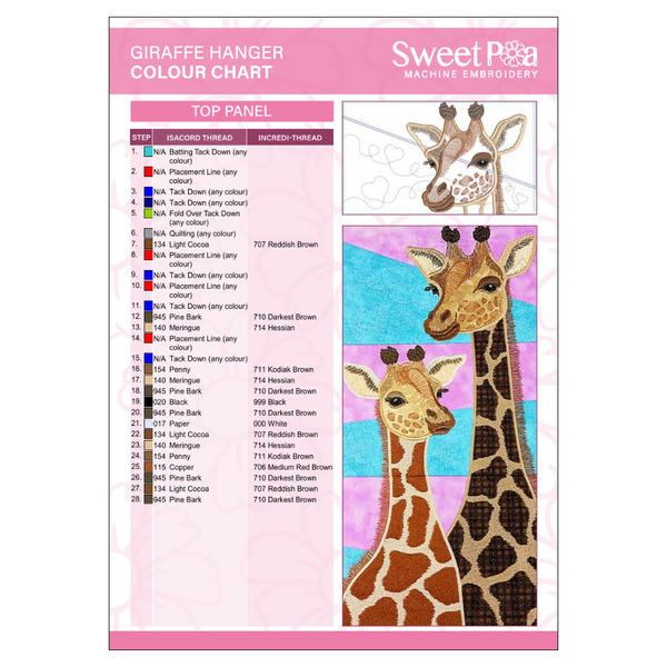 Giraffe Hanger Colour Chart
