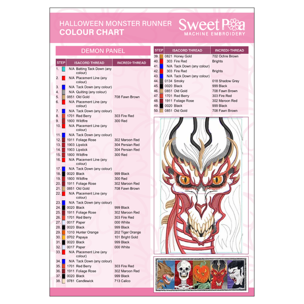 Halloween Monster Runner Colour Chart